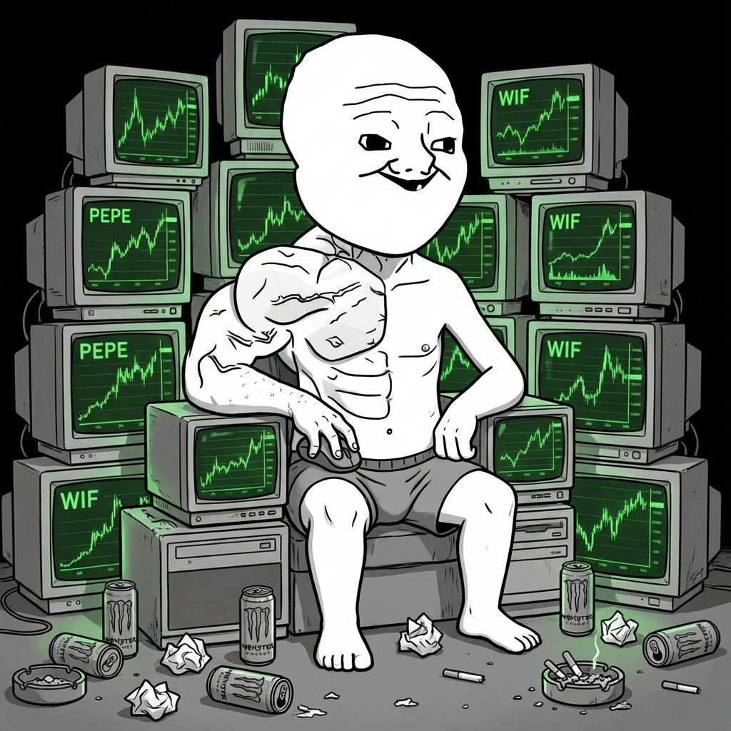 The $GOON is the ultimate edgelord—a massive, sweat-drenched beast, eyes glazed from endless sessions, gripping his setup like a vice